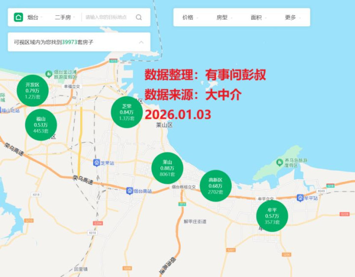 烟台楼市现在也是一个以二手房为主的市场,烟台楼市里面的新房成交量占比整体的成交量还是明显不如二手房的。