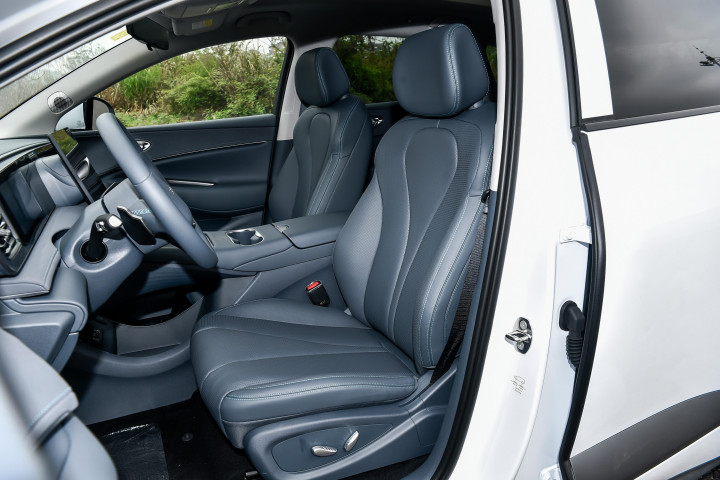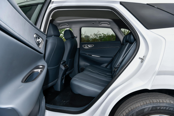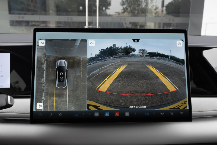 空间体验上,我们邀请身高176cm的体验者实测,坐进前排调整至舒适驾驶姿势后,头部空间有一拳两指的余量,腿部空间可根据驾驶习惯灵活调节,最大能留出两拳以上的活动范围。保持前排座椅不动,体验者移至后排,头部空间依然有一拳左右的距离,腿部空间在正常坐姿下可达两拳半,膝盖完全不会顶到前排靠背,即便长时间乘坐也不会感到局促。后排地板近乎纯平,中间乘客的脚部活动空间也比较充裕,多人出行时的舒适性有所保障。车辆的储物细节也值得关注,前部行李舱容积142L,可放置小型手提包或应急物品;常规行李舱容积757L,轻松容纳3个28寸行李箱,若需装载露营装备、自行车等大件物品,将后排座椅按40:60比例放倒后,容积可扩展至1630L,实用性拉满。此外,标配的VTOL移动电站功能支持最大6kW对外放电,户外露营时可连接电磁炉、投影仪、咖啡机等设备,打造专属的户外生活场景。