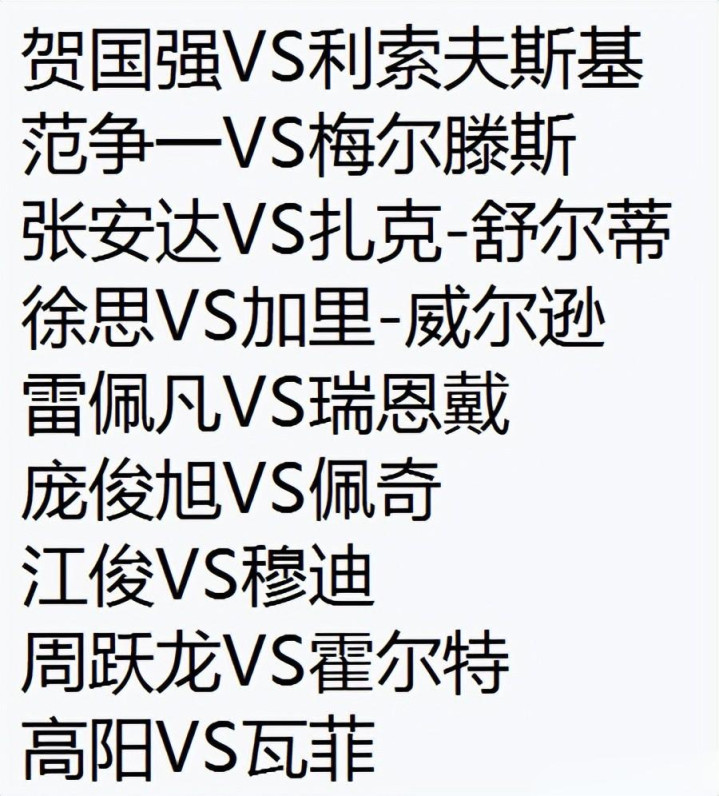 第四轮也就是决胜轮,中国9人将会先后亮相,全部都是外战,具体的对决如下——